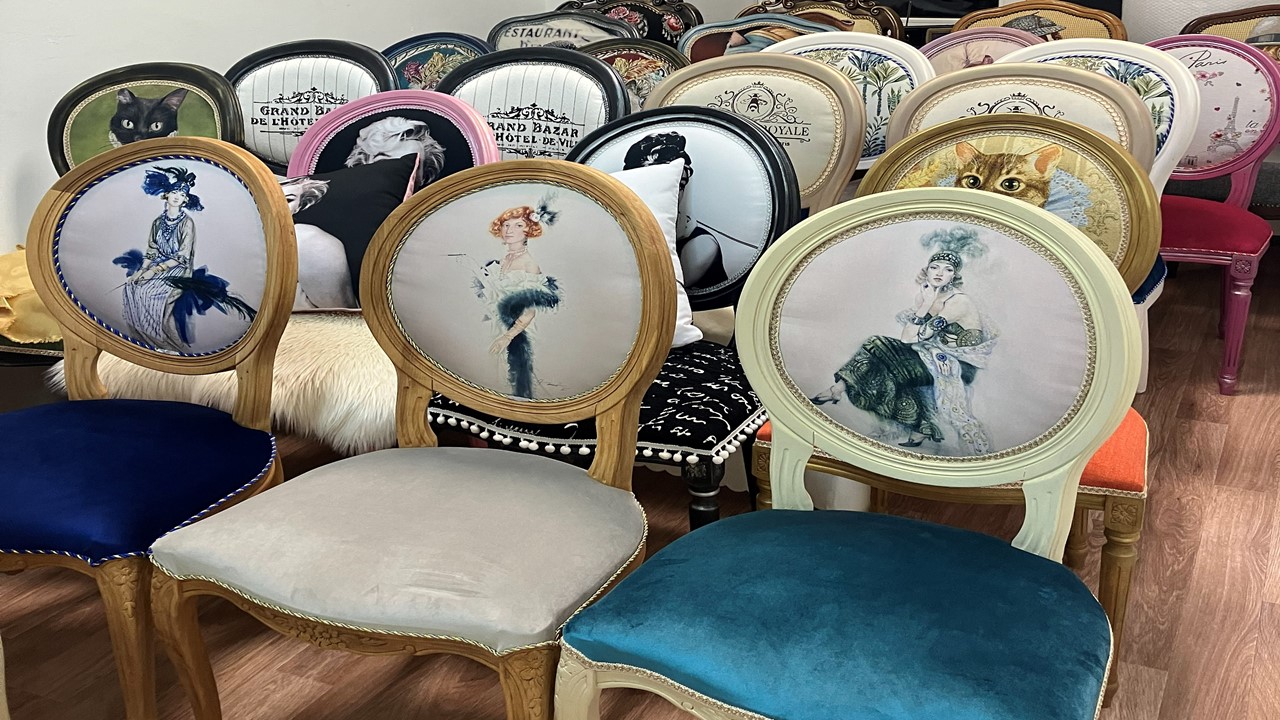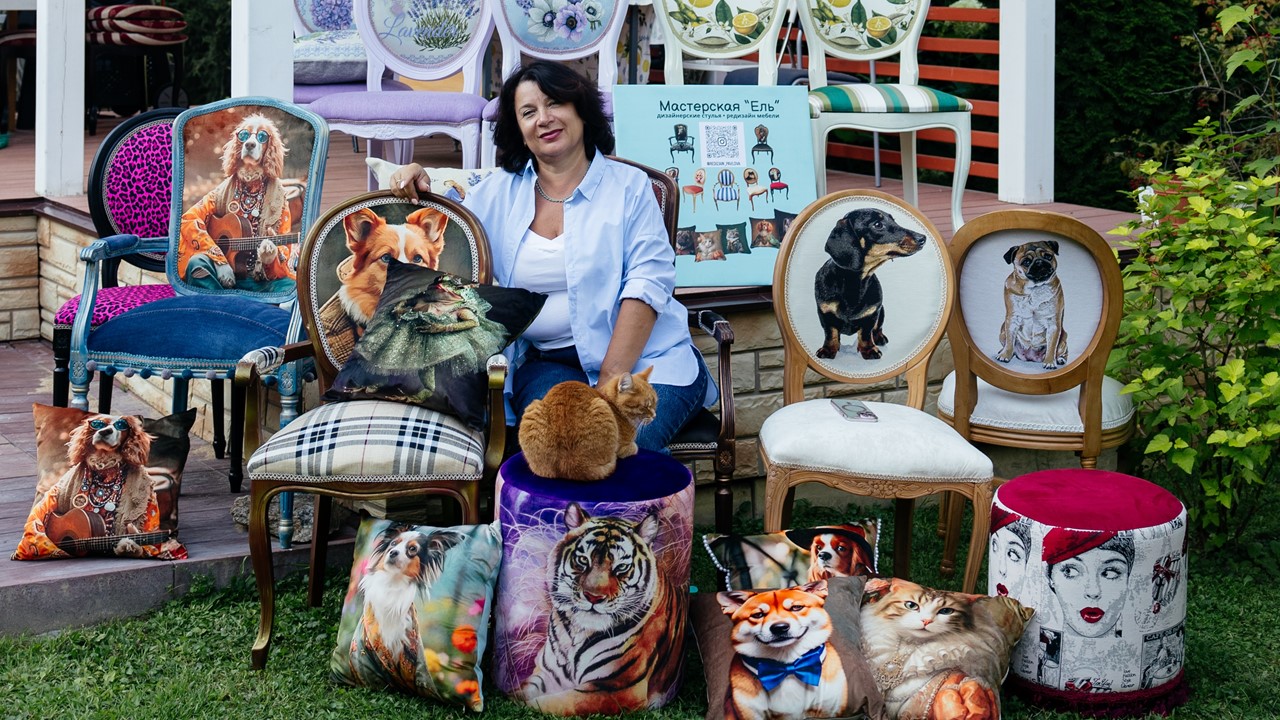 Мастерская "Ель" занимается редизайном мебели и созданием дизайнерских стульев с авторскими принтами. Основательница Елена Павлова работает в этой сфере более 7 лет, используя техники сложного окрашивания и декоративной отделки.
